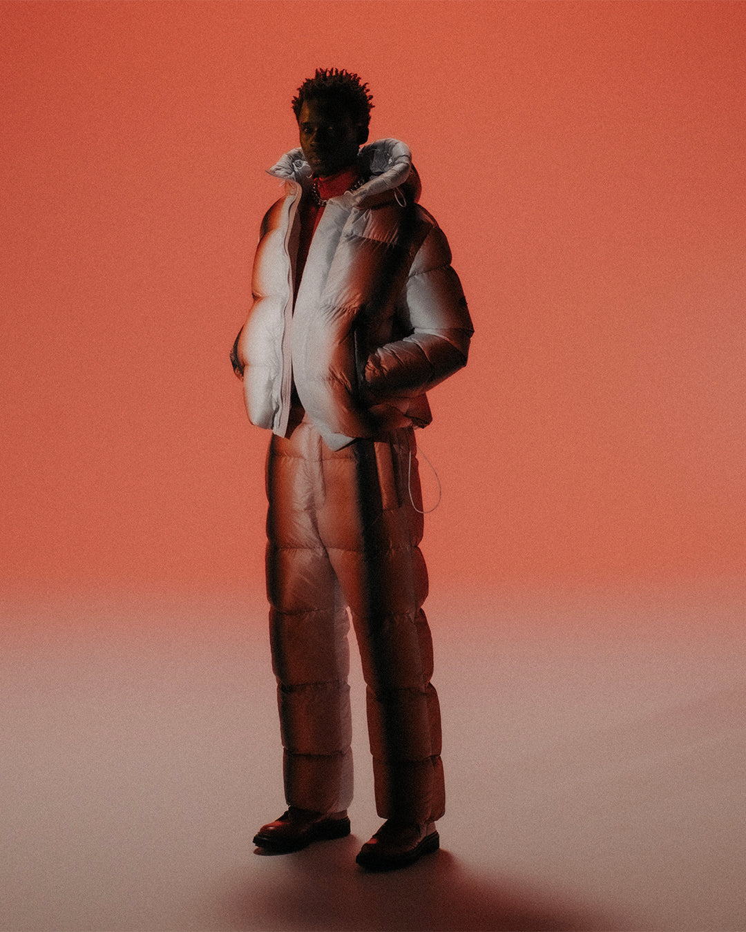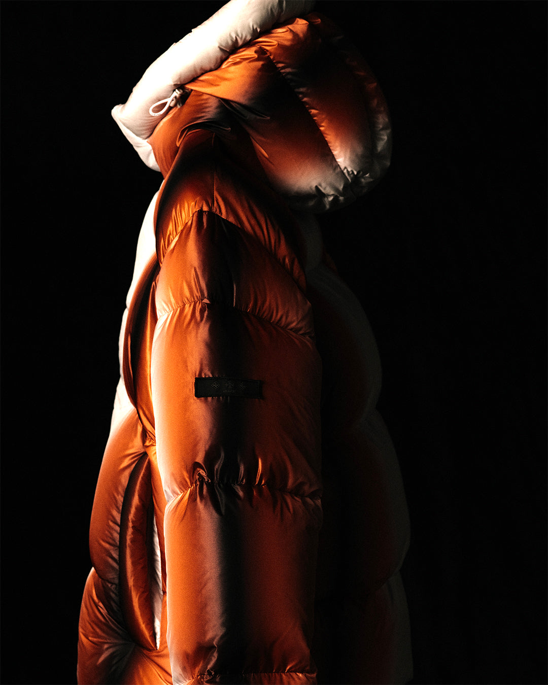 ラインナップはダウンジャケット、ダウンパンツ、バッグの3型で、各2色展開です。繊細なグラデーションが視覚的なレイヤーと深みを生み、静かな存在感を放ちます。銀座フラッグシップでは、漆芸作家・桐本滉平氏による同コンセプトの表現も展開し、共通の色の概念を共有いたします。