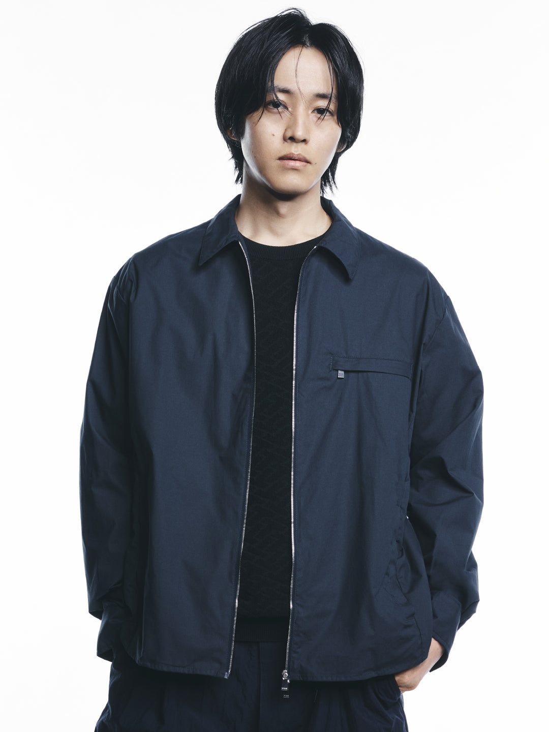 環境や時間感覚が曖昧な白スクリーンとニュートラルトーンの世界観の中で、服そのものが持つ洗練された構造と質感が際立ちます。