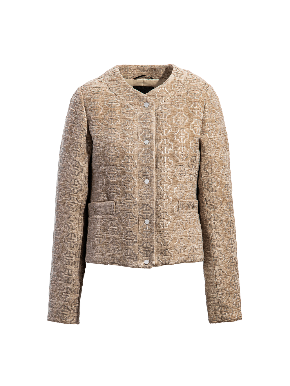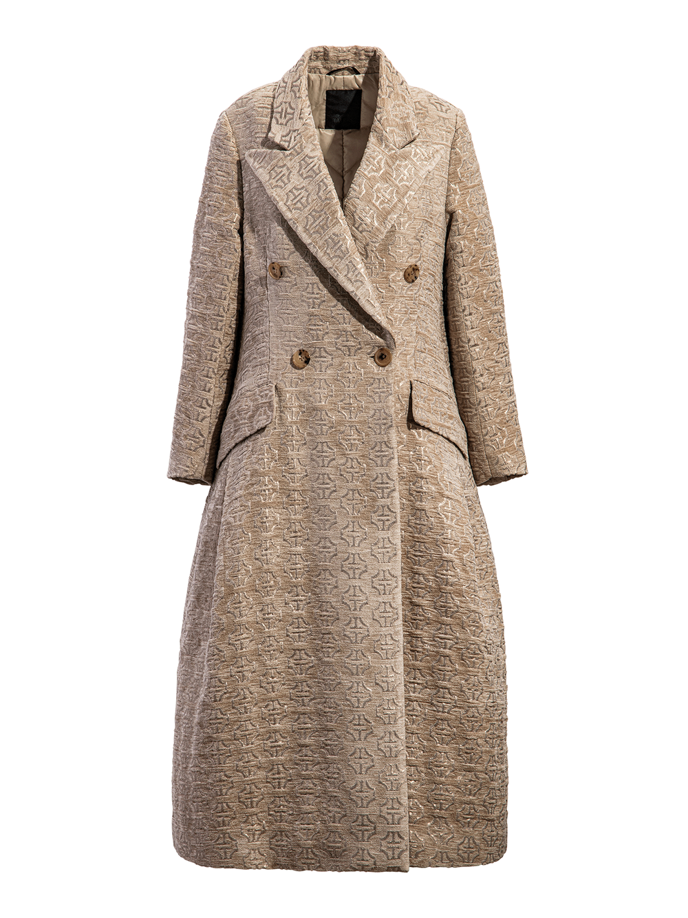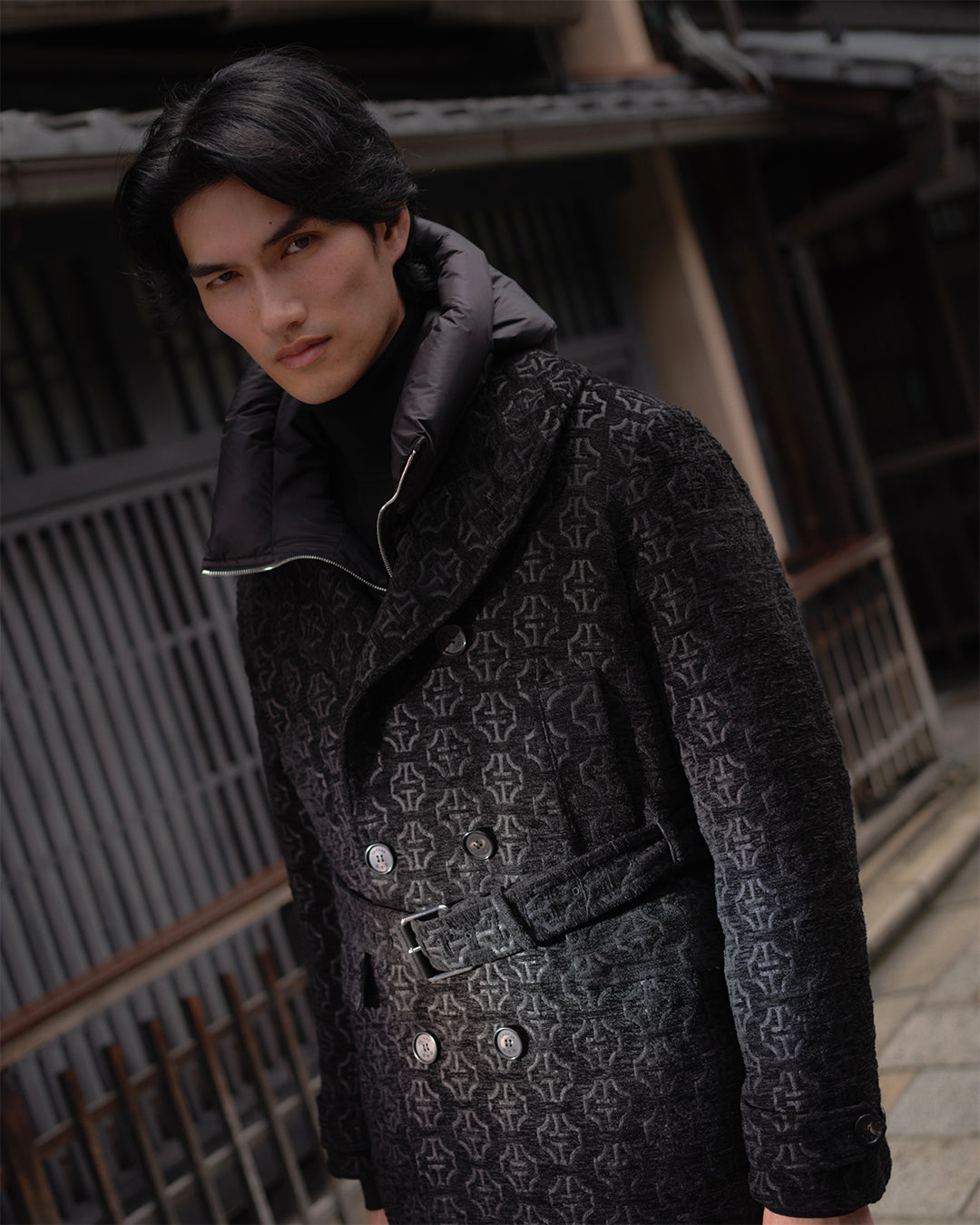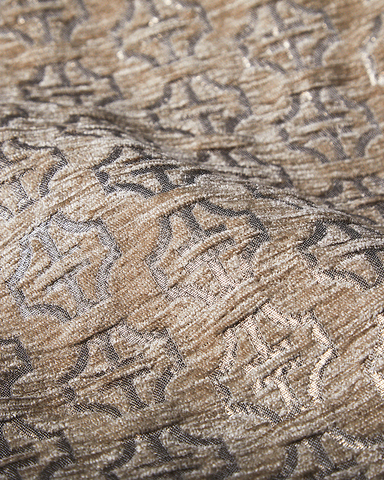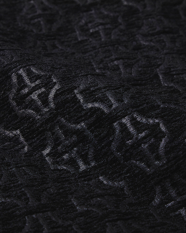 ブランド名の由来でもある“山脈”と、日本の文化を象徴する“家紋”をモチーフに、TATRASの新たなアイコンとして生み出されたモノグラムデザインをHOSOOの熟練職人の手で織り上げています。